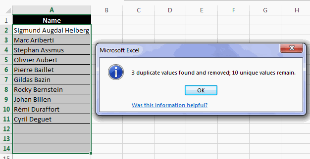 - Now all the duplicate cells in the selected range will be removed.